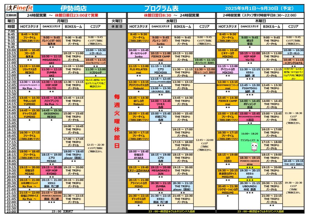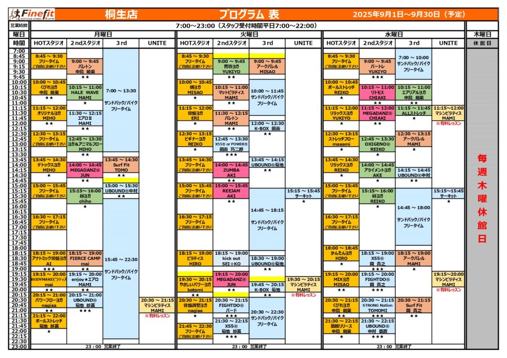 2025.08.25 インフォメーション 9月レッスンスケジュールを更新♬ いつもFinefitをご利用頂きありがとうございますヽ(^o^)丿変更点いくつかございますので確認宜しくお願い致します!☆彡 Tweet Share Hatena Pocket RSS feedly Pin it この記事のタイトルとURLをコピーする 8月レッスンスケジュール更新♬ 前の記事 9月キャンペーンのお知らせ♬ 次の記事