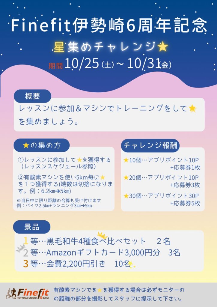 Finefit伊勢崎6周年記念星集めチャレンジ☆
