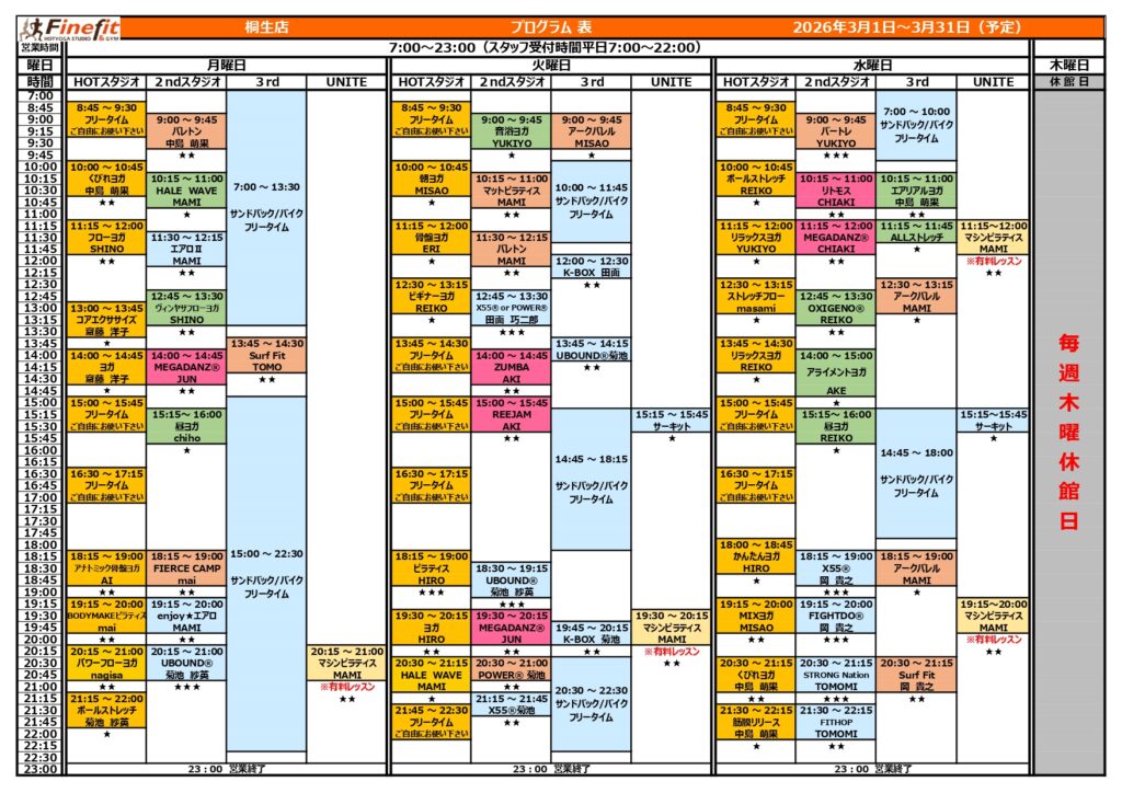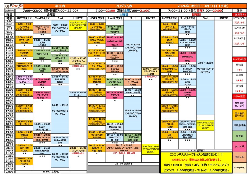 2026.03.02 インフォメーション ♡3月レッスンスケジュール更新♡ 3月のレッスンスケジュール更新しました!何箇所か変更点ありますのでご確認宜しくお願い致しますヽ(^o^)丿今月も元気に楽しく頑張りましょう!! Tweet Share Hatena Pocket RSS feedly Pin it この記事のタイトルとURLをコピーする 3月入会キャンペーンのお知らせ♬ 前の記事 ♡4月のレッスンスケジュール更新♡ 次の記事