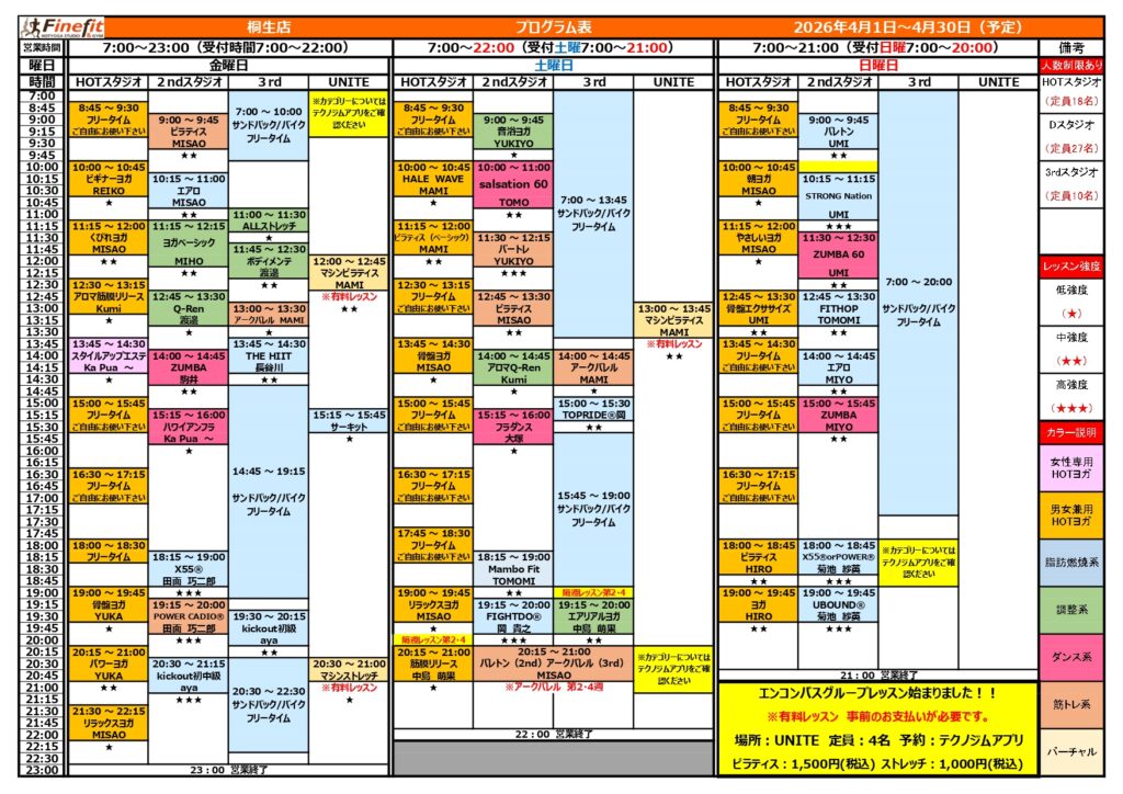 2026.03.30 インフォメーション ♡4月のレッスンスケジュール更新♡ いつもFinefitをご利用頂きありがとうございます!4月のレッスンスケジュール更新しました(‘ω’)ノ変更点いくつかございますので確認宜しくお願い致します! Tweet Share Hatena Pocket RSS feedly Pin it この記事のタイトルとURLをコピーする ♡3月レッスンスケジュール更新♡ 前の記事 4月春の入会キャンペーンのお知らせ♬ 次の記事